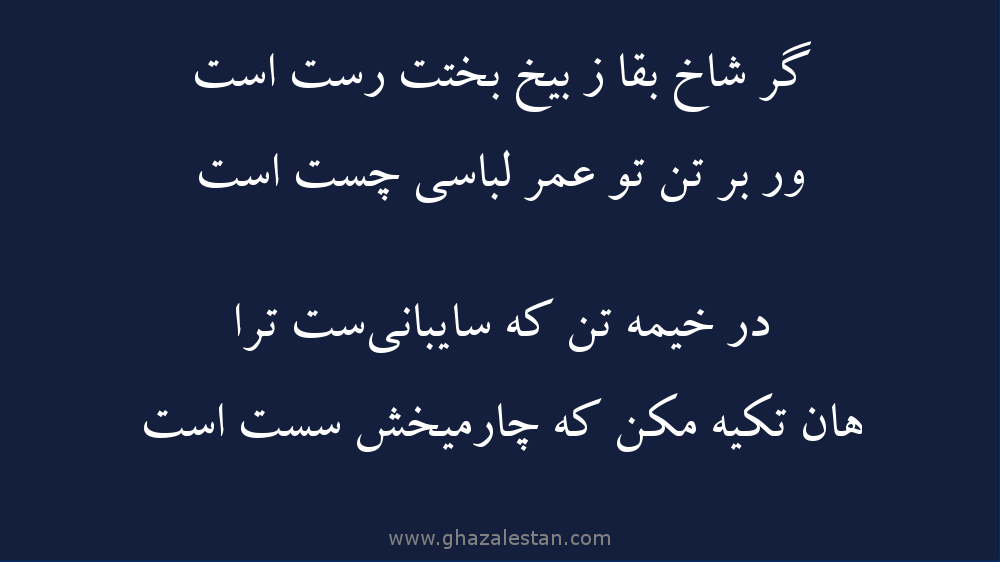 هرچند فکر کنی رستم دستانی ویا قارونی ویا درجایگاه فرعونی واندیشه سقراطی به ااینها اعتماد مکن دنبال چیزهایی باش که از آفات به دور باشد