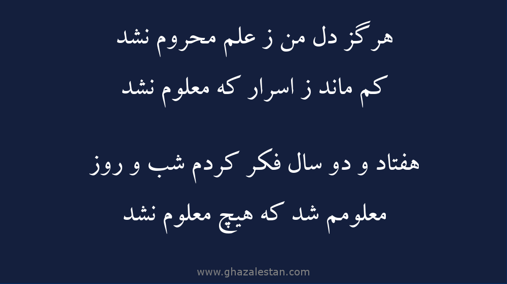 بر اين مرد هفتاد و دوساله عالم معلوم شد كه هيچ معلوم نشد بر من هشتاد و چهارساله نادان معلوم شد كه هيچ هيچ هيچ