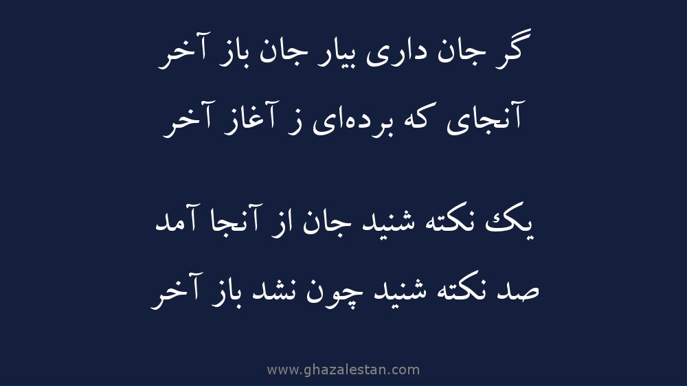 گر جان داری بیار جان باز آخر