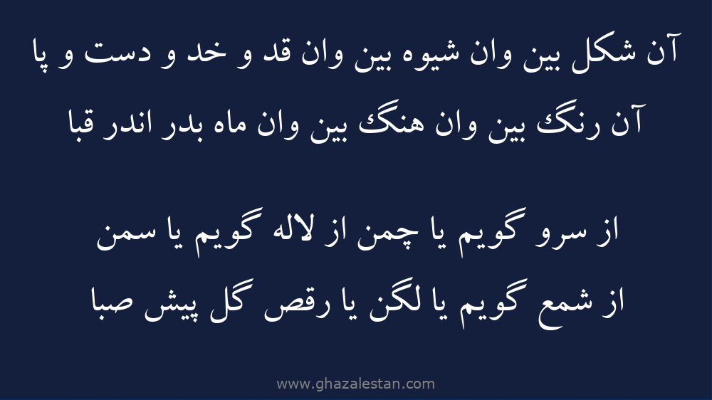آن رنگ بین وان هنگ بین وان ماه بدر اندر قبا