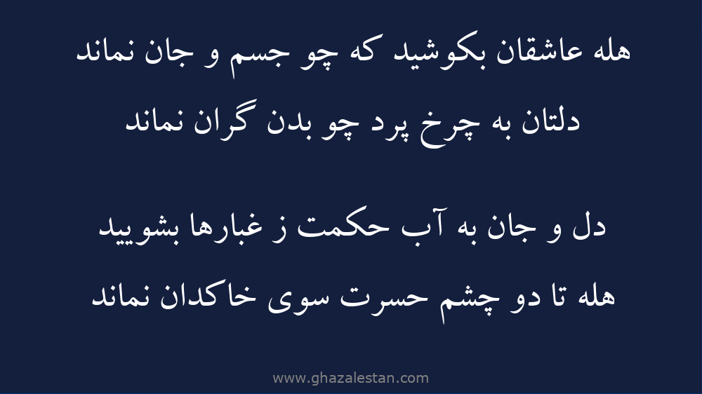 هله عاشقان بكوشید كه چو جسم و جان نماند