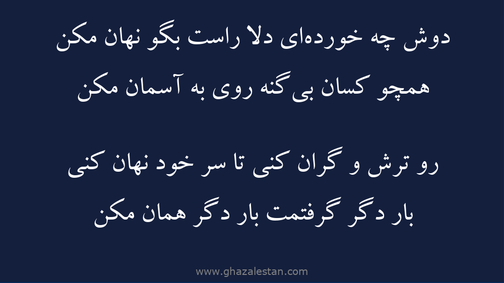 دوش چه خوردهای دلا راست بگو نهان مكن