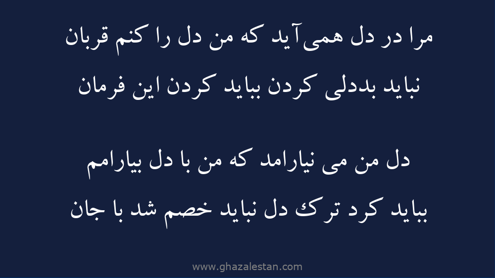 مرا در دل همیآید كه من دل را كنم قربان