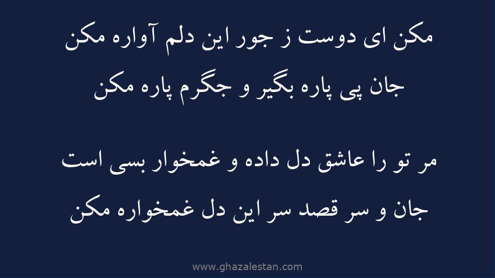 مكن ای دوست ز جور این دلم آواره مكن