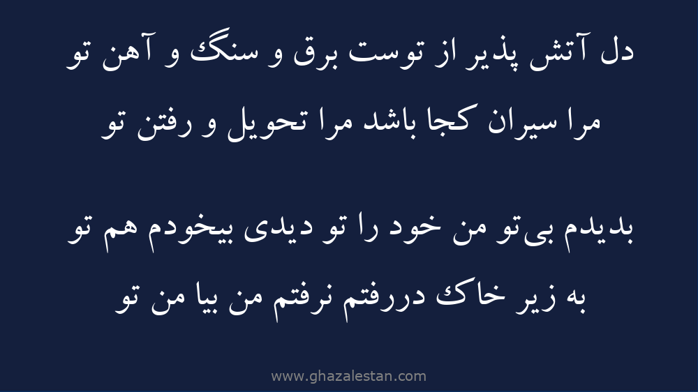 دل آتش پذیر از توست برق و سنگ و آهن تو