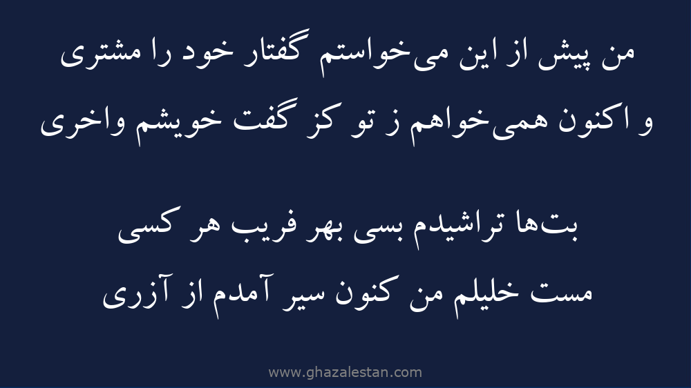 و اكنون همیخواهم ز تو كز گفت خویشم واخری