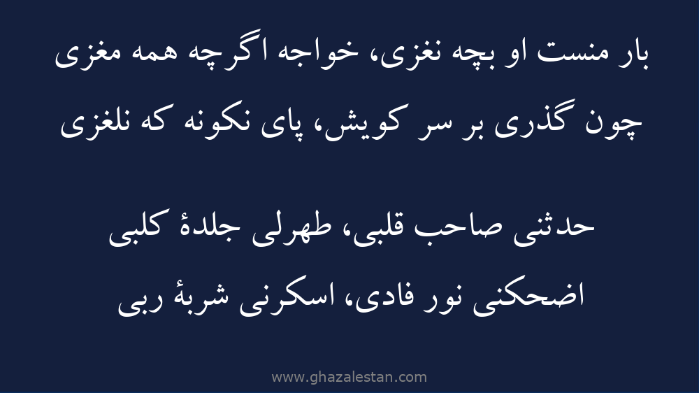 بار منست او بچه نغزی، خواجه اگرچه همه مغزی
