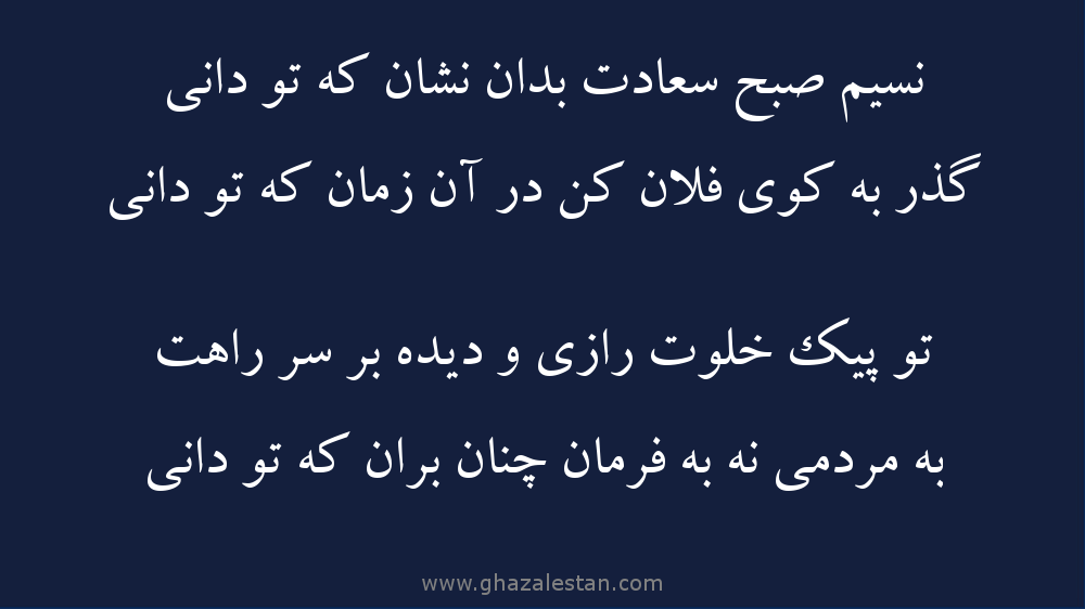 گذر به کوی فلان کن در آن زمان که تو دانی
